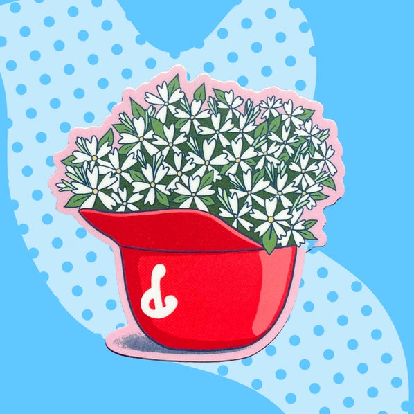 Nothing screams spring like flowers and baseball. An iconic Phillies ice cream helmet filled to the brim with flowers adds a sweet touch of Philly character to any surface .