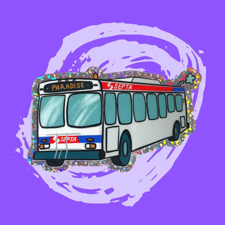 A sparkly ode to SEPTA buses. We're all on a journey to somewhere and some of us are taking public transit for a leg or two. Stick it on your laptop, water bottle, sketchbook, & more!