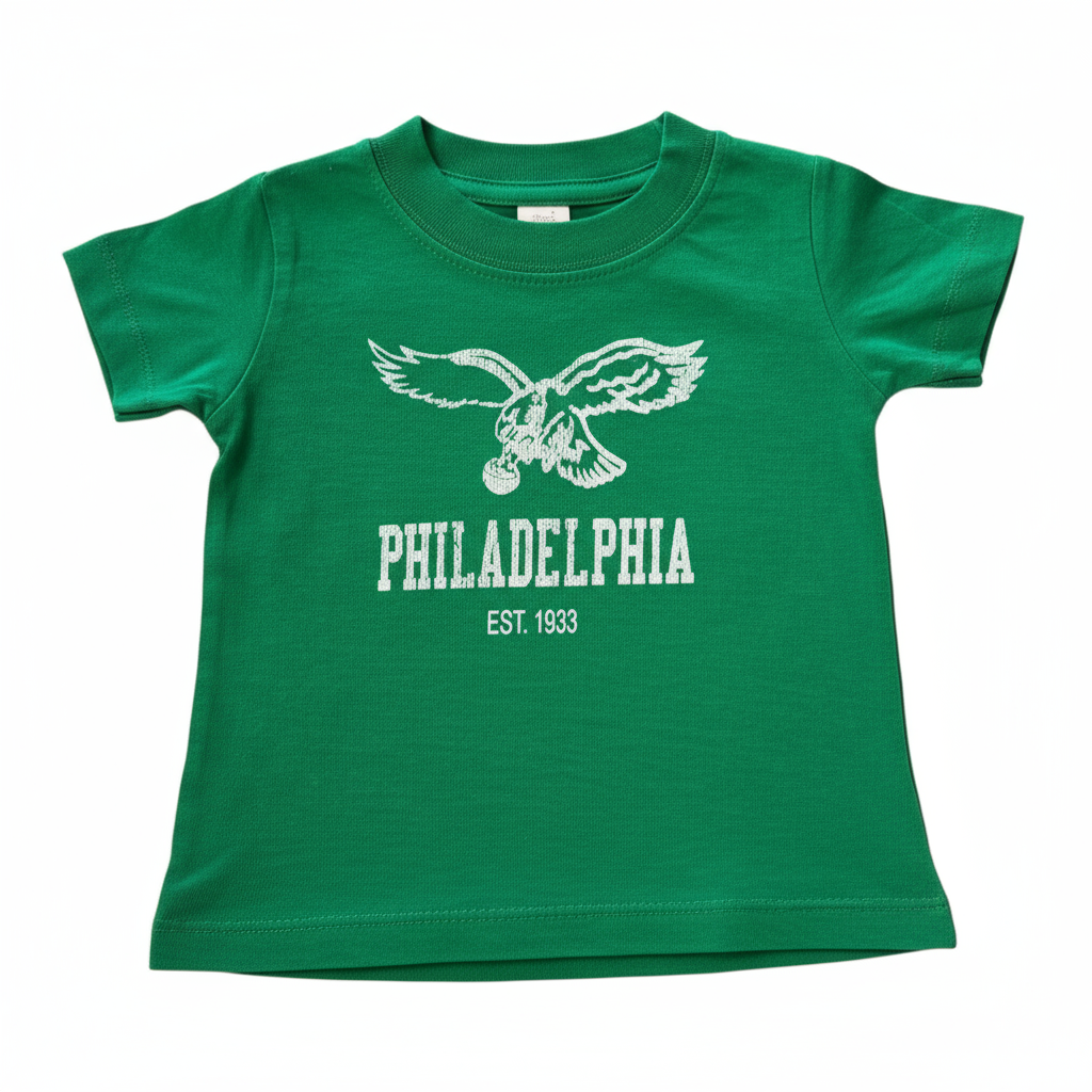 Get your little ones game day ready with this adorable Eagles - inspired infant tee! Designed for the tiniest fans, this soft cotton shirt features team inspired colors and a playful football graphic that shows everyone your baby's on the winning team. Perfect for watching with the family and showing team pride all season long!