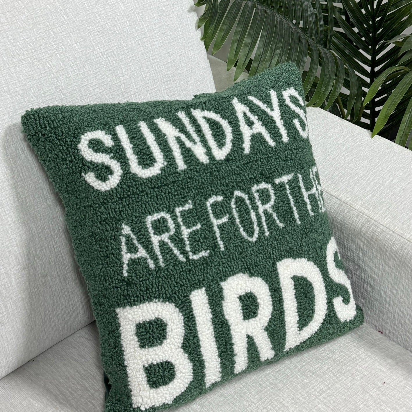 Sunday's are for the Birds Hooked Cushion Throw Pillow